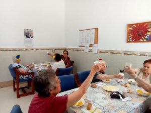 Nuestro salón se ha llenado de farolillos, música flamenca y palmas al compás. Las personas usuarias han disfrutado de bailes, juegos, refrescos y tapas típicas, creando un ambiente festivo que nos ha hecho sentir la feria como si estuviéramos en la caseta más alegre del recinto. 💃🕺🎶